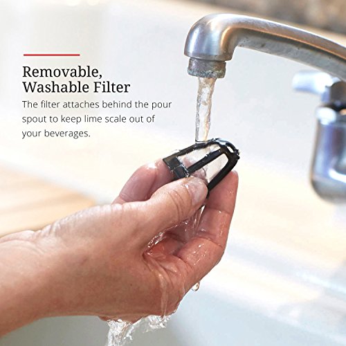 Removable, Washable Filter - The filter attaches behind the pour spout to keep lime scale out of your beverages. Removable for easy cleaning.