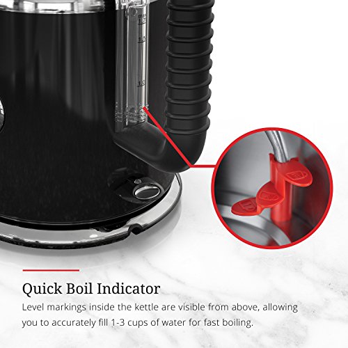 Quick Boil Indicator - Level markings inside the kettle are visible from above, allowing you to accurately fill 1-3 cups of water for fast boiling.