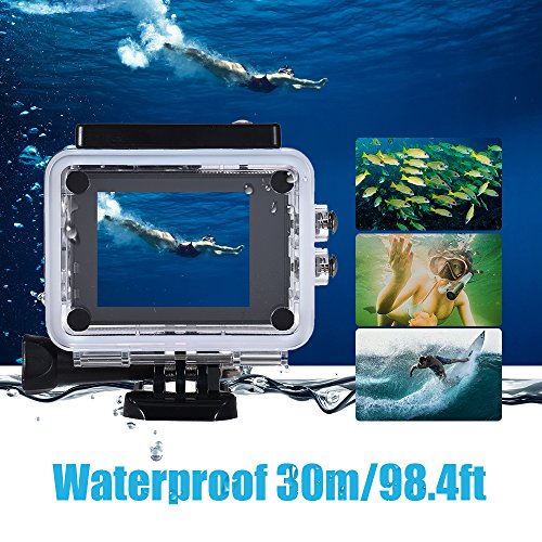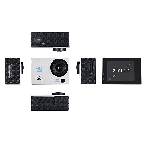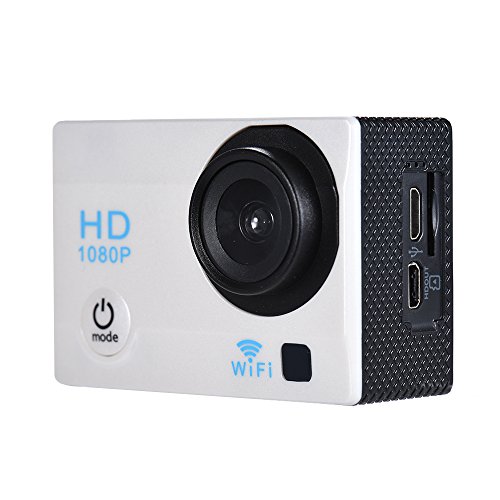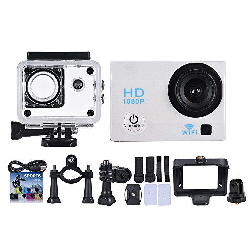 Andoer 액션 카메라 12MP 2 LCD WiFi 1080P 140°광각 렌즈 30m방수 흔들려 방지 지지 타임라푸스동영상 (백색)