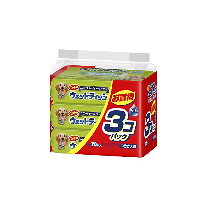원본상품명:ユニチャ?ムペットケア ユニチャ?ムペットケア ペット用ウェットティッシュ つめかえ用 70枚×3個パック