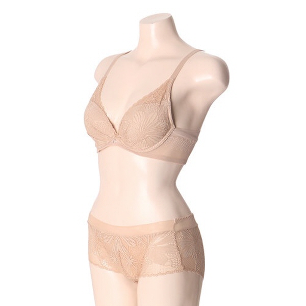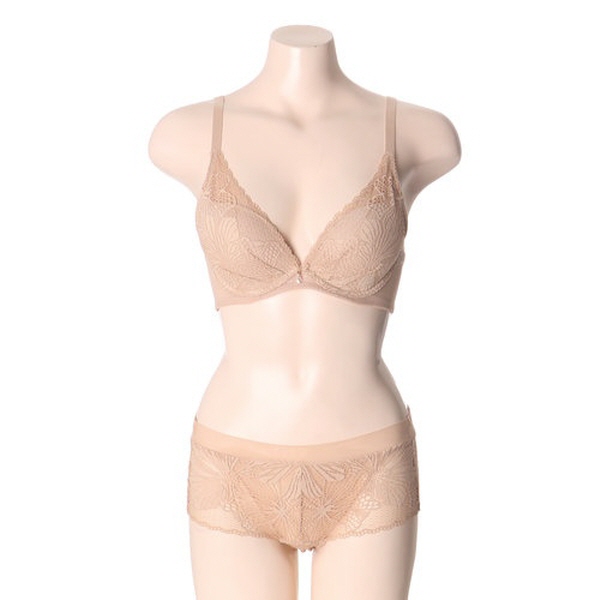 스킨컬러로 비치지않으며 딥브이 스타일로 뜨지않게 잡아주며 패드 주머니가 있어 여분의 패드를 넣을 수 있습니다. A~D컵 까지의 큰 사이즈까지 나옵니다. 팬티는 전체 레이스 타입으로 엉덩이를 전체적으로 감싸 편하게 착용 가능합니다.