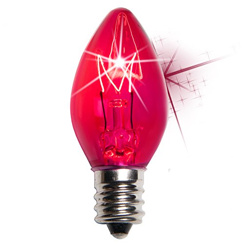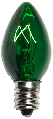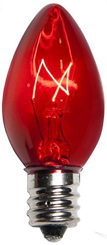 - 7 watt bulbs and 130 Volt traditional incandescent C7 (E12 socket) bulbs and rated at 3,000 hrs. Replacement Bulbs. No Strings Included.