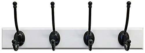 Headbourne 8012E 18" White Hook Rail / Coat Rack with 4 Black Nickel Double Hooks