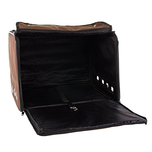 -. Binding : Misc. -. Brand : None -. Color : Brown -. EAN : 0642893324193 -. Feature : - Made of waterproof oxford cloth and breathable nylon netting / - Mesh top and side air holes offer increased ventilation / - Four surrounding pockets (one large, three small) for extra storage space / - Portable design folds together or lays flat for easy carrying and storage / - Sides have zippers and a button closure at the top -. Label : Petrum -. Manufacturer : Petrum -. MPN : DG-g450inner -. PackageQuantity : 1 -. PartNumber : DG-g450inner -. ProductGroup : Pet Products -. ProductTypeName : PET_SUPPLIES -. Publisher : Petrum -. Studio : Petrum -. Title : Petrum Collapsible Folding Soft Portable Pet Crate Carrier - Coffee -. UPC : 642893324193