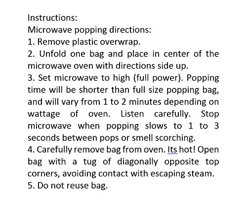 Case of 12 boxes, each with 3 regular size bags of microwave popcorn (total of 36 bags). 1 bag yeilds 13 cups of popped popcorn (2.5 servings)