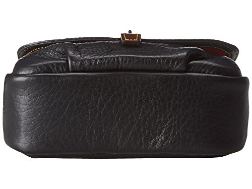 H 7.25" x W 3.25" x L 9.25" One inside zip pocket. Two inside pockets. Inside key hook. Adjustable strap. Strap drop length 23". Lined. Flap with magnetic closure.
