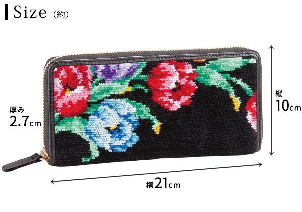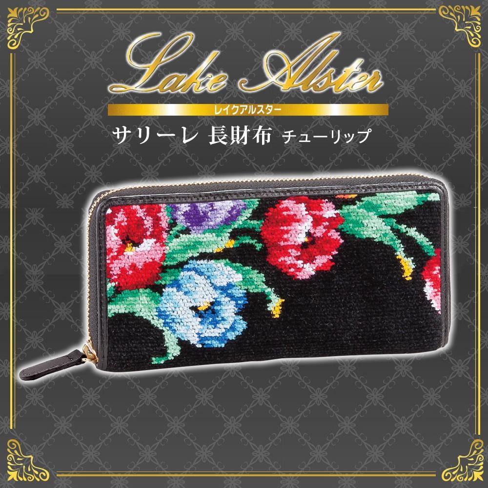 上品なシェニール織を両面に施した、華やかな長財布です。 製造国:中国 素材・材質:柄部分:綿100%(ドイツ製シェニール織)付属部分:本革 商品サイズ:(約)縦10×横21×厚み2.7cm 重量:約165g 仕様:ポケット数:カードポケット×12、仕切りポケット×4、ファスナー付き小銭入れ(内側仕切り付き)×1  ※サプライヤー直送品【商品名】LAKE ALSTER レイクアルスター サリーレ 長財布 チューリップ 21532838 ブラック02