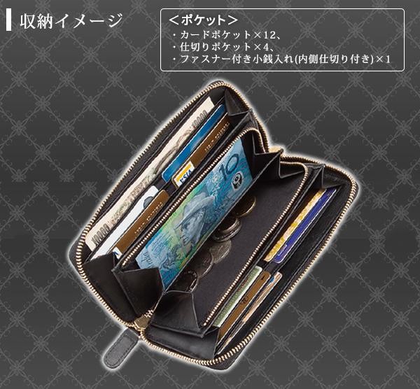 仕様ポケット数:カードポケット×12、仕切りポケット×4、ファスナー付き小銭入れ(内側仕切り付き)×1