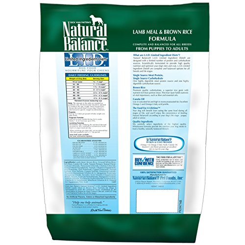 Natural Balance L.I.D. Limited Ingredient Diets Lamb Meal & Brown Rice Formula Dry Dog Food, 14-Pound