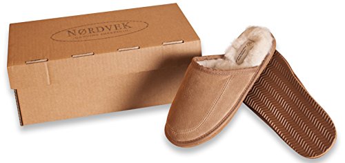 -. Feature : Handcrafted slip-on mule slipper design / Snug & warm Mens slippers by Nordvek / Suede leather outer material & wool-blend lining for comfort and warmth / Non-slip, hard-wearing TPR sole - suitable for light outdoor use