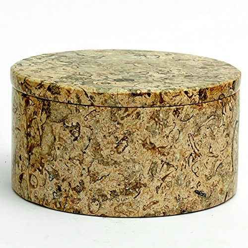 All Natural Fossil Coral Stone Trinket (Jewelry) Box - 4" Round & 2.5" Tall