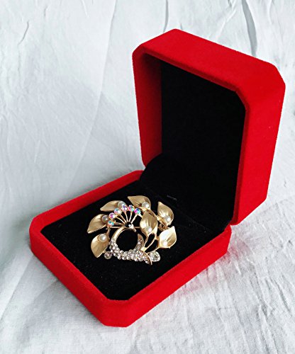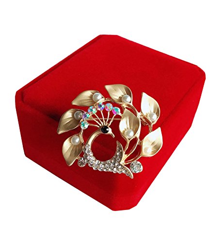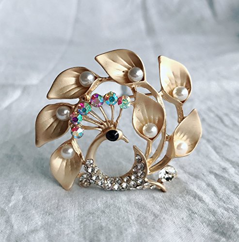 Blooming Flowers Brooch Pin for Women Corsage Scarf Clip in Crystal Unisex Banquet Wedding Casual Peacock Brooch (Gold)