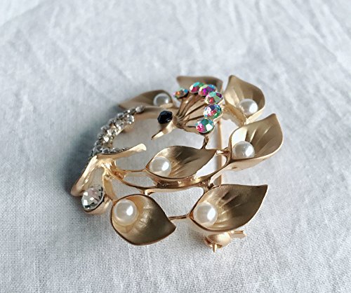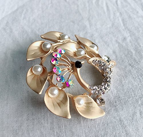 GOLD PEARL BROOCH PIN FOR WOMEN CORSAGE SCARF CLIP CRYSTAL UNISEX WEDDING CASUAL PEACOCK BROOCH