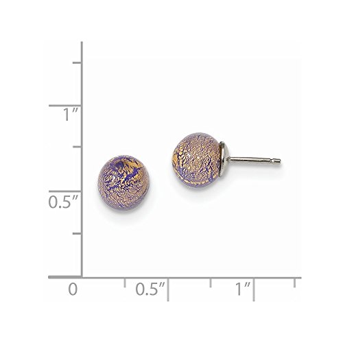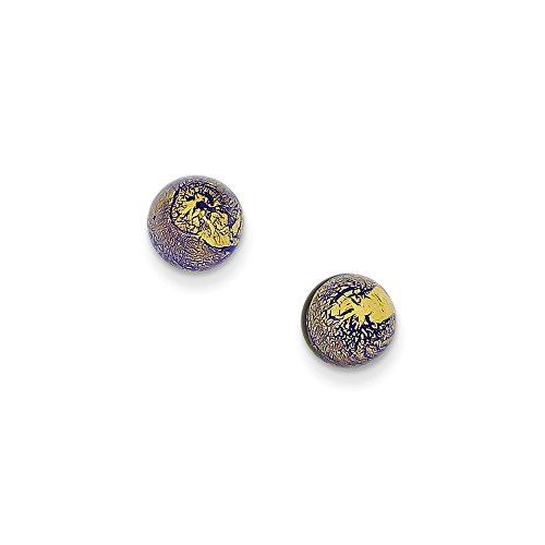 Sterling Silver Blue & gold-tone Color Italian Murano Earrings (8mm x 8mm)