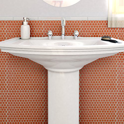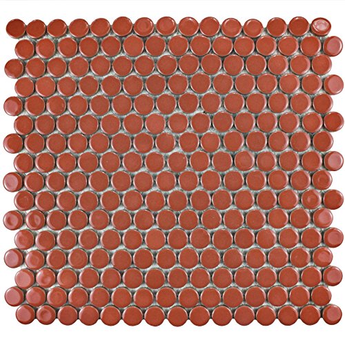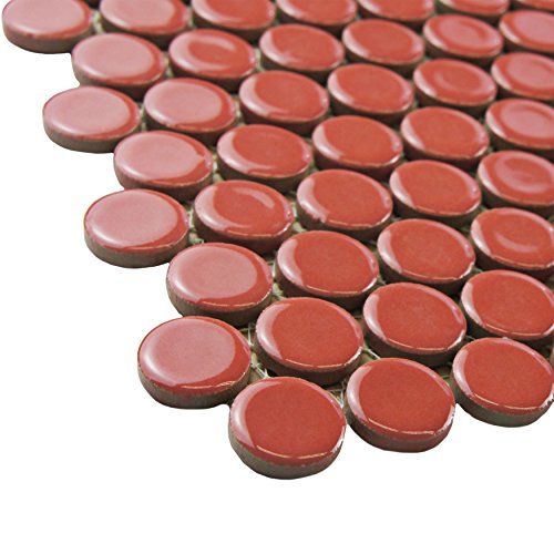 SomerTile FKOMPR95 Penny Vermilio Porcelain Mosaic Floor and Wall Tile, 12" x 12.625", Red