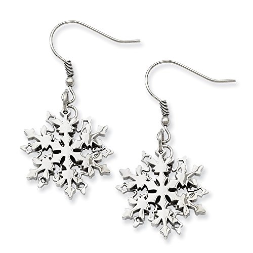 Stainless Steel Polished Snowflake Dangle Earrings (20mm x 40mm)