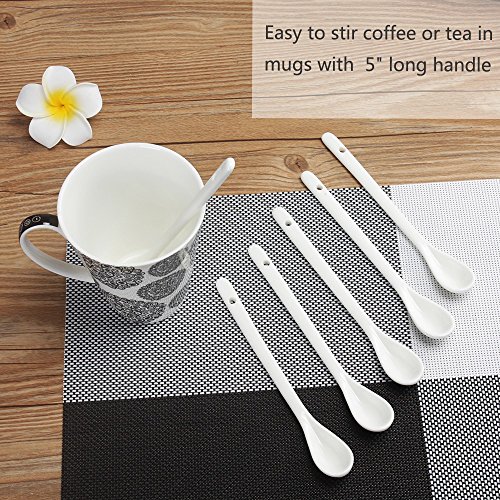 Porlien 6 1/2" Teaspoons, Coffee Spoons Set of 6 for Mugs , White Porcelain