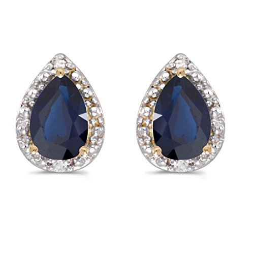 14K Yellow Gold Pear Shaped Sapphire and Diamond Earrings Shipped in a lovely Earring Box, from the Amanda Rose Collection by MLG