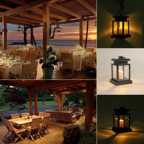 -. Title : Solar Lights Outdoor Hanging Lantern, LVJING Solar Powered LED Lights for Garden Backyard Fence Patio, Warm White, Candle Flicker Effect, Auto On Off