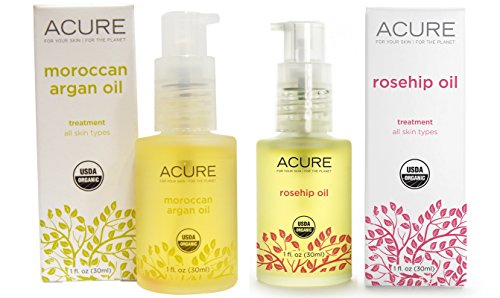 -. Title : Acure Organics Certified Organic Rosehip Oil and Argan Oil Bundle For Face and Body, Natural Anti-Aging and Environmental Damage Serum With Vitamin C & E, 1 fl. oz. each