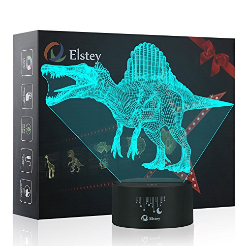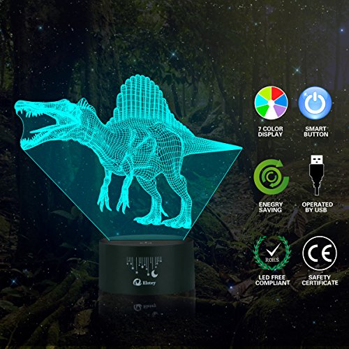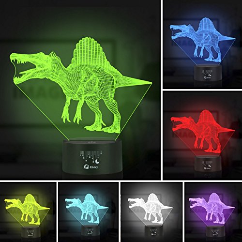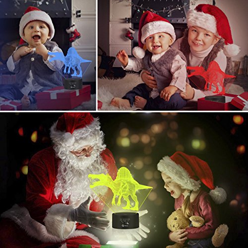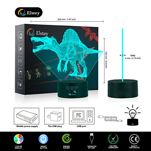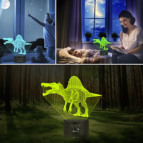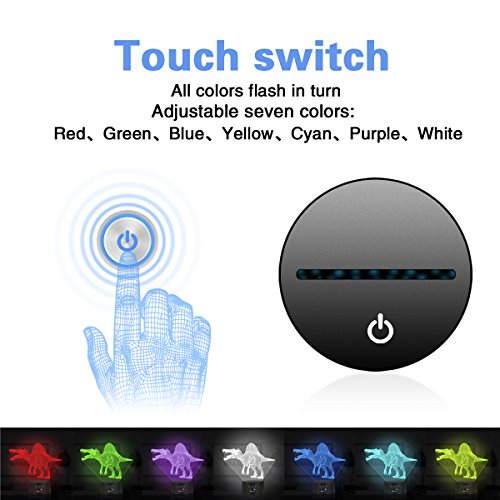Dinosaur 3D Night Light Table Desk Lamp, Elstey 7 Colors Optical Illusion Touch Control Lights with Acrylic Flat & ABS Base & USB Cable for Christmas Gift
