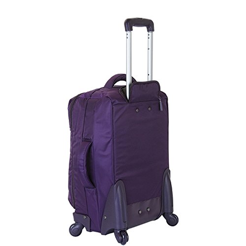 Product Description Fast turns. Sharp curves. Speed bumps. Go anywhere and in any direction with this spin-savvy carry-on. Its four wheels turn 360?Four wheel spinner wheel system for maximum functionality?Vibrant Fashion colors?Durable and water resistant PVC reinforced Nylon?3 Year GuaranteeWeight: 4.9 lbs.Body Dimensions: 20.6" x 13.2" x 7.9"Overall Dimensions: 21.6" x 14.9" x 9.4" Nylon - Durable Nylon fabric.PVC material - Is a flexible, waterproof rubber-like plastic. PVC backing is laminated to polyester to make it highly moisture resistant.? 0