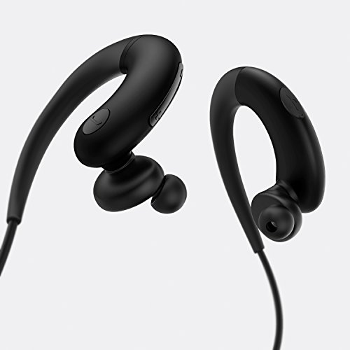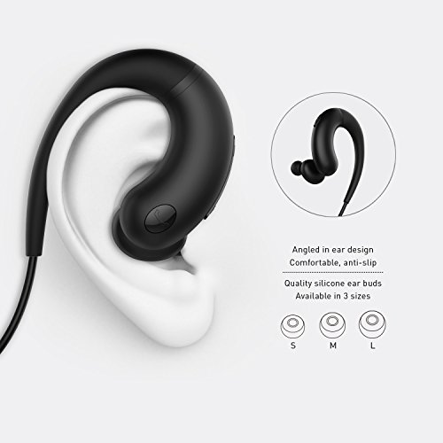 SWEAT PROOF DESIGN: Our bluetooth earbuds are perfect for working out at the gym, running, biking, playing sports and outdoor use. The earbuds come in three different sizes and fit any size ear comfortably. The over-ear hook design and adjustable neck-strap ensures a secure fit so you can work out harder for longer.