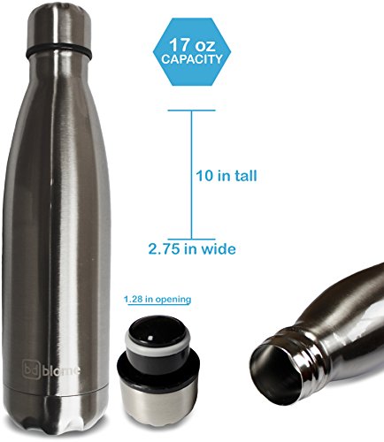 BLOME DESIGN Vacuum Insulated Travel Water Bottle (17oz) | Leak-Proof Double Walled Stainless Steel Water Bottle | Outdoor Sports Camping Hiking Cycling | Keeps Drinks Hot & Cold