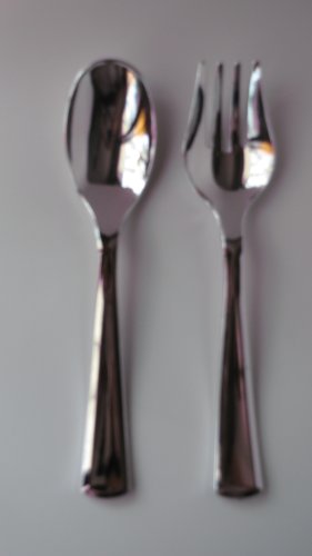 Plastic Silver Disposable Large Fork and Spoon Serving Set