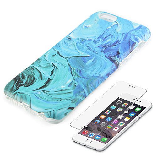 Ucolor iPhone 6 6S case Pastel Gradient Abstract Cloud Slim Flexible Soft TPU Protective Skin Cover Case for iPhone 6 6S-with [Slim Tempered Glass Screen Protector] (Red Floral)