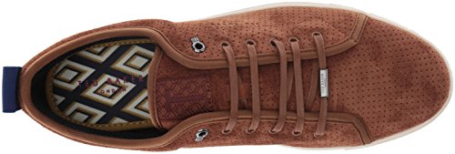 Studio : Ted Baker Publisher : Ted Baker Binding : Apparel Product Description Classic Derby plimsoll in perforated suedes. Upper features "T" branded tongue label, Gold emboss quarter branding, pop colour counter elastic with large embroided "T", TB branded top eyelets and 2 colour lace options. A padded airtex lining and Ortholite printed sock add extra comfort elements. Moulded cupsole unit features Ted Baker Geometric detailing. 0