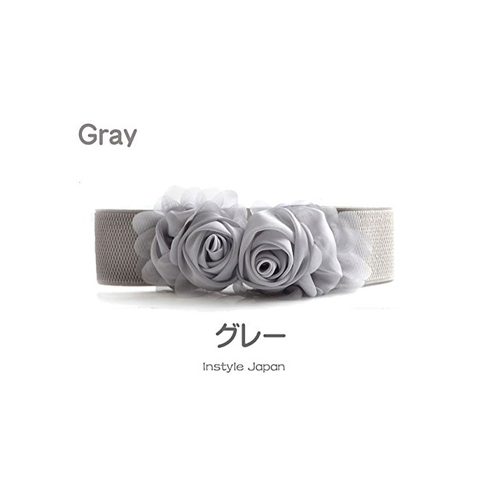 원본상품명: レディス 【 薔薇 レス 】 ゴム ベルト 太 ウエスト スッキリ パティ ドレス フラワ バラ グレ ( グレイ ) [Instyle Japan]