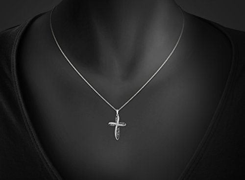 -. Title : Christmas Gifts Diamond Necklace Cross Sterling Silver Pendant Real Diamond Religious Necklace With FREE 18" Silver Chain