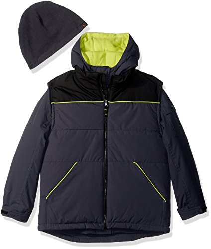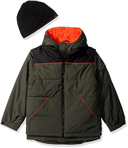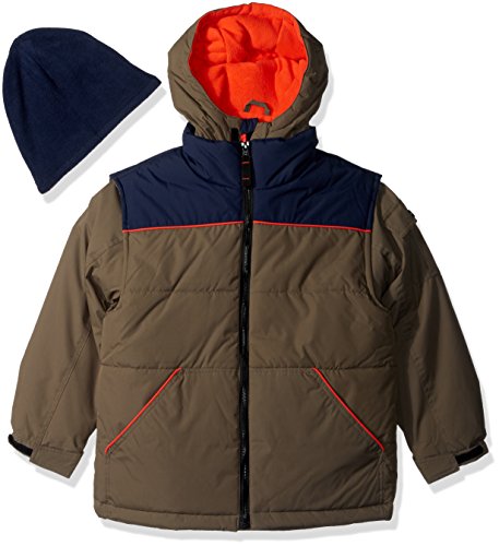 Outer jacket is a vest with 2 lower front pockets, fleece lining in hood