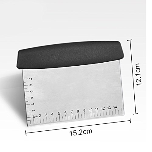 Studio : oem Publisher : oem Product Description Jcoze Plastic Handle Stainless Steel Cutter Scratch Cut Dough Bakery Scraper Chopper Tool with Scale Material: 430 stainless steel PP Specification: Semi-circular scraper: radius 11.8 * 14.5CM/4.64"*5.7", thickness 0.1CM/0.039" Rectangular scraper: full length 15.2CM * 12.1CM/5.98"*4.76", thickness 0.1CM/0.0039" Weight: Semicircle 200g / pcs Rectangular 234g / pcs Color: stainless steel, black silicone handle Product manual: Used to cut dough dough, not damage the operating pad, the scale used to measure the length and breadth of the dough, very convenient. Practical multi-function tool, in the kneading time, you can stick to the dough on the board scraping down, you can cut the dough, scrape the cake surface cream layer, scratch the chocolate shower, also can help us to shape the dough shift To the baking tray.