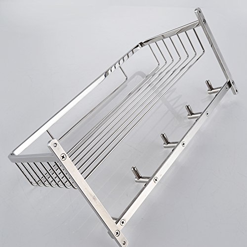 KES A2128 Bathroom Lavatory Rectangular Basket Shelf with Towel Hook Hanger Wall Mount, Polished Stainless Steel