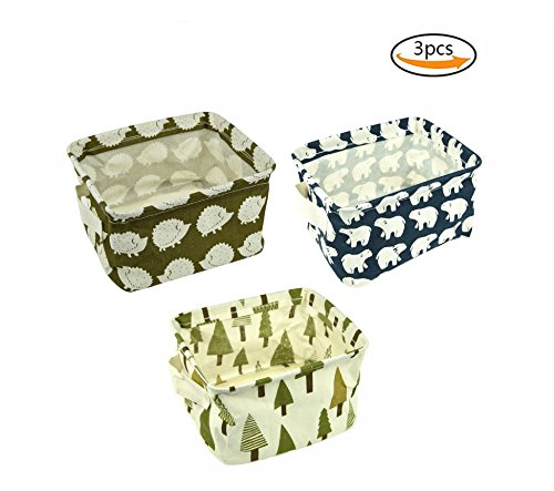 NKTM Storage Bin Basket Foldable Canvas Fabric Storage Cube Bin Set With Handles for Home Office Closet (Set of 3)