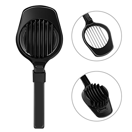 Flexzion Stainless Steel Multipurpose Slicer - Egg Mushroom Strawberry Tomato Kiwi Fruit Cutter Divider Separator with Seven Blades Long Handle Cooking Kitchen Home Gadgets Tool Accessories Black