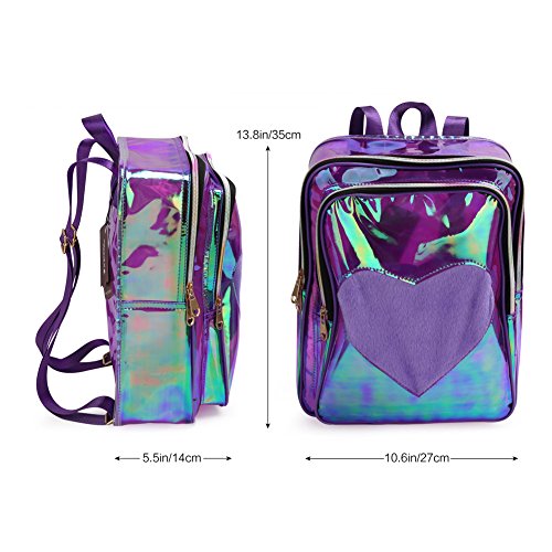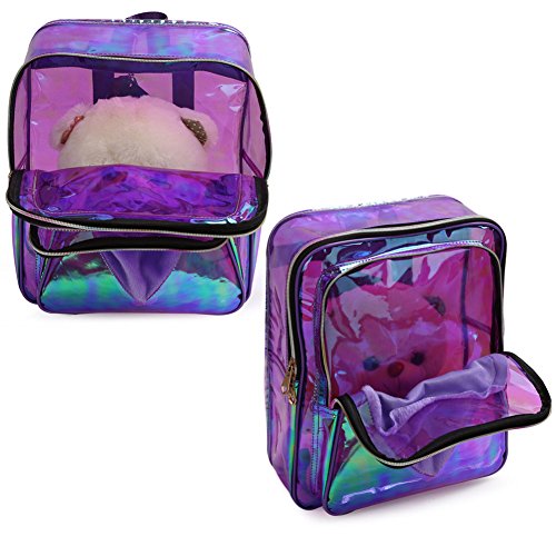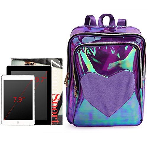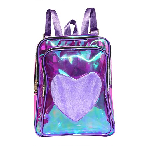 Zicac Girls' Transparent PVC Backpack Clear Laser Satchel Daypack Rucksack Shoulder Bag