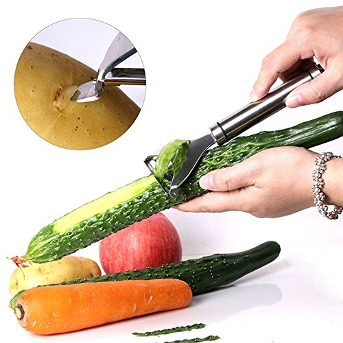 - 【ULTRA SHARP DURABLE AND VERSATILE】 : Vegetables Fruits Peeling have never been so simple. Stainless steel blades easily glide even through the toughest vegetables. Peeling potato, carrot, zucchini, cucumber, apple, avocado and more is a matter of seconds now. Very easy to use, to bring more convenience to your life.
