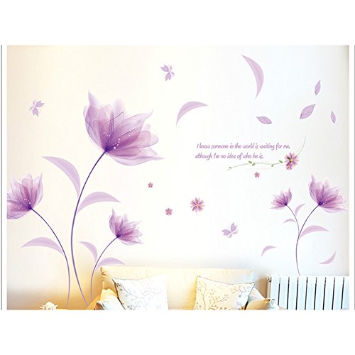 -. Feature : Romantic purple flower wall decal great fit for living room, bedroom, office, hall way / Material: PVC+Vinyl ;Imported / Size: 23.6" x 34.5"(60cm *90 cm),pasted 86.6" x 55.9"(220cm *142cm),or you can diy what you want / Weight: 0.16 kg;Style:fashion floral / Package included: 1 x Wall Sticker set