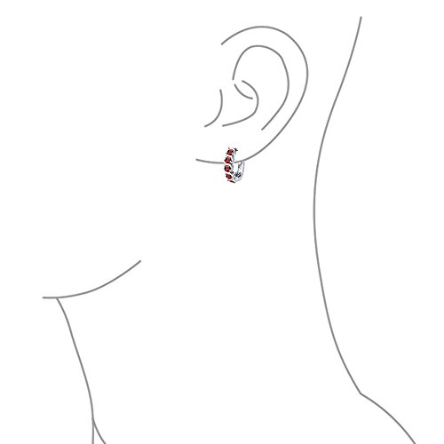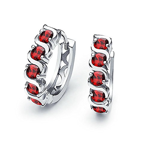 You will find yourself reaching for these gorgeous January birthstone earrings over and over again. They radiate feminine charm and modern simplicity and sparkle from every angle. These stunning red Simulated Garnet color CZ huggie hoops earrings are perfect if you love the color red wear red jewelry. They are a super cute choice for any day of the year, but would make a great Valentines Day gift. Each red Simulated Garnet color CZ earring is adorned with five sparkling cubic zirconia stones that are set in a wavy design of 925 sterling silver. They are rhodium plated to resist tarnish to stay looking highly polished and shiny for many years to come. Very lightweight and comfortable to wear, these sterling silver huggie earrings open very easily on a hinge and snap firmly back into place, so that they fit very securely in the ear. Order yours today for a look you will love.Feature