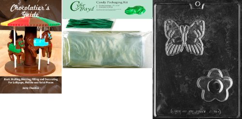 Cybrtrayd MdK50GRBk-F088 Butterfly/Flower Soap Fruits and Vegetables Chocolate Candy Mold with Chocolatier's Bundle, Includes 50 Cello Bags, 50 Green Twist Ties and Chocolatier's Guide