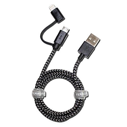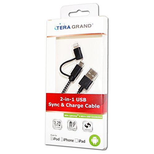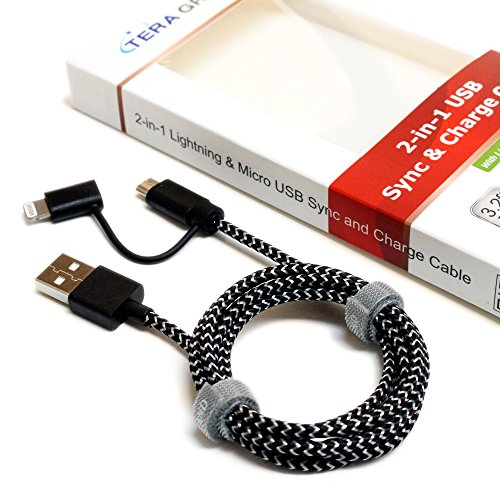 [Description] Apple MFi Certified 2-In-1 USB Sync and Charge Braided Cable with Lightning and Micro USB Connector - 3 Apple MFi certified Lightning braided cable - Built with genuine Lightning connector from Apple and Aluminum housings on both ends; Reversible design on Apple 8-pin Lightning connector Compatible with iPhone 7 / 7 Plus / 6s Plus / 6s / 6 Plus / 6 / 5s / 5c / 5_ iPad Pro_ iPad Air / Air 2/ Mini / Mini 2/ Mini 3_ iPad 4th generation_ iPod 5th generation_ and iPod nano 7th generation Support fast charge 2.4A Max - charges iPod_ iPhone_ or iPad with Lightning connector and syncs with your computer through an available USB port; charges your phone with any USB enabled charging device Tangle free_ high quality Nylon fiber jacket for greater durability and flexibility Comes with two velcro ties for easy wrapping to reduce cable clutter