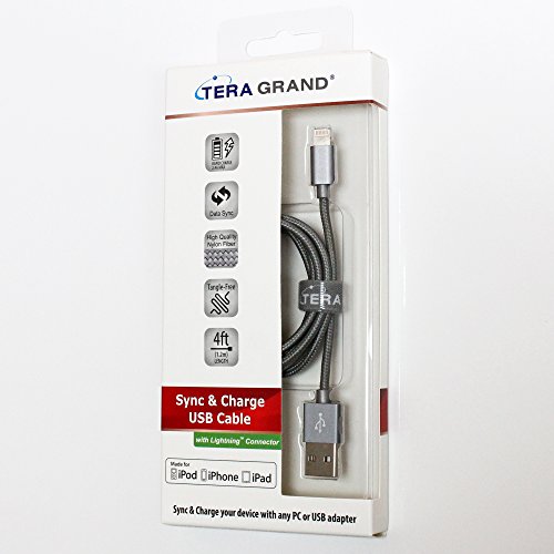 [Apple MFi Certified] Tera Grand Lightning to USB Braided Cable with Aluminum Housing 4 Feet for iP