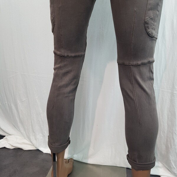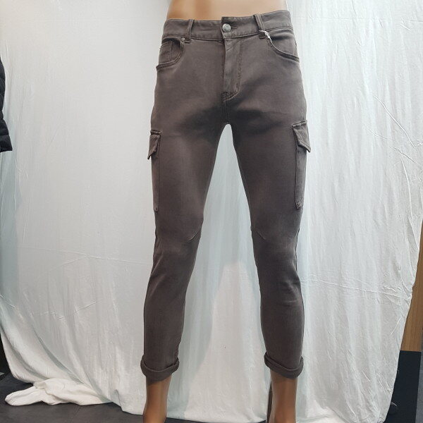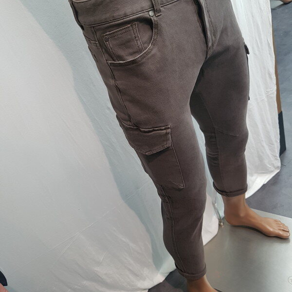 2018년 신상입니다. 브라운 계열의 모카컬러 스판데님 소재이며 스톤 워싱감을 준 컬러데님으로 옆선에 포켓을 넣은 카고팬츠 스타일의 제품입니다. 뒷판에 절개를 넣어 입체감을 살려 라이더 핏감을 한 층 더 살린 아이템입니다.