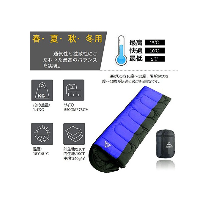 원본상품명: ?袋 封筒型 ?量 sleepingbag アウトドア 登山 車中泊 丸洗い 1.4kg/1.8kg 最低使用?度-10度 ?納袋付き (B-Blue Left 1.4kg)