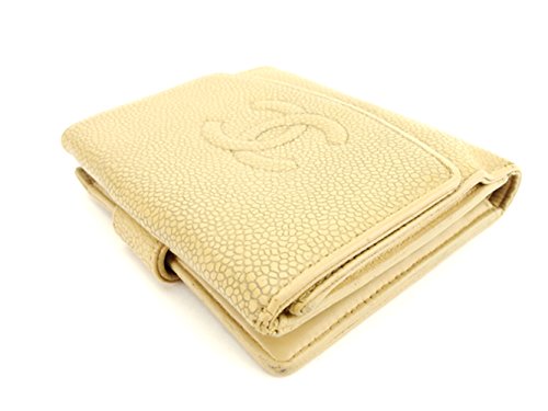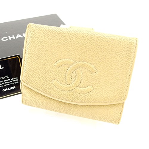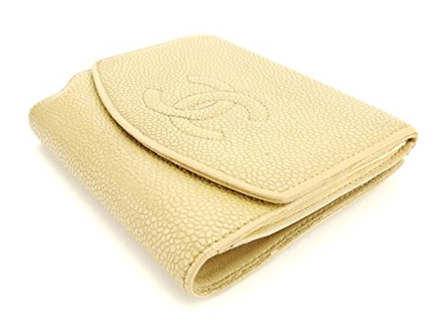 -. Feature : 横幅:約11.5cm 縦幅:約9.5cm 奥行:約2cm / [開口部] ボタンホック [外側] マチ付き小銭入れ×1 [内側] 札入れ×1 カード入れ×6 オープンポケット×2 / ベージュ / キャビアスキン / 付属品:保存箱(スレ 汚れ あり)
