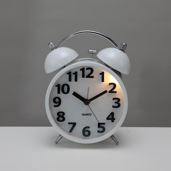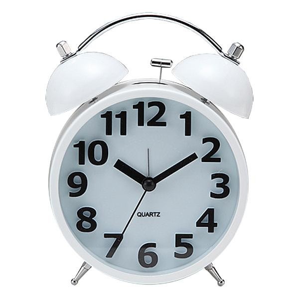 スイープ秒針で流れるように静かに時を刻みます。寝る時も邪魔にならない目覚まし時計です。アラームは大音量のベルで目覚めをサポートします。文字も大きく、暗闇でも安心なライト機能付です。 |