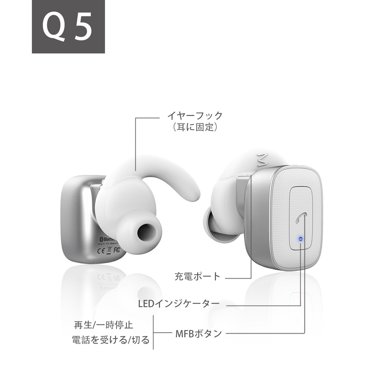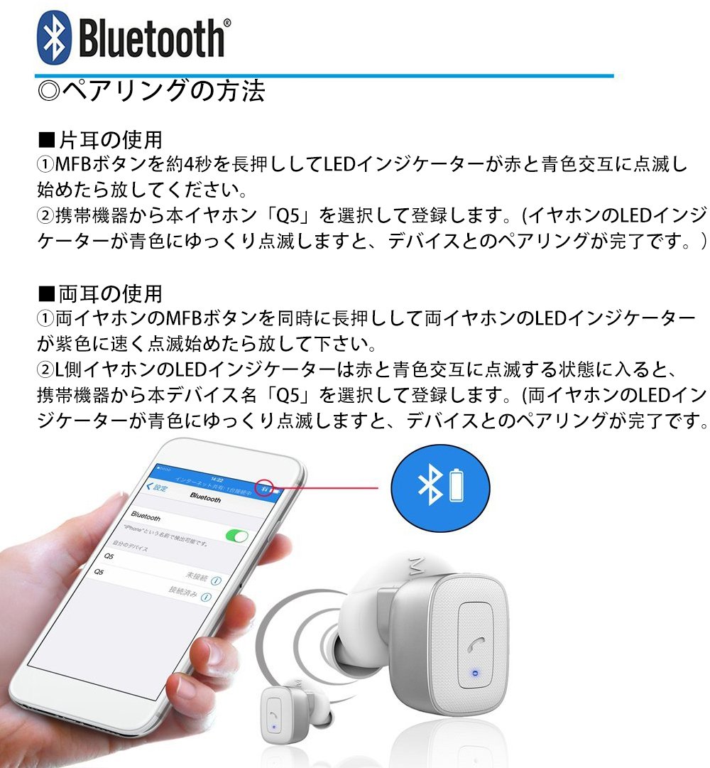 ② When the LED indicator of the L side earphone enters the state of alternately flashing red and blue, select this device name "Q5" from the mobile device and register it.